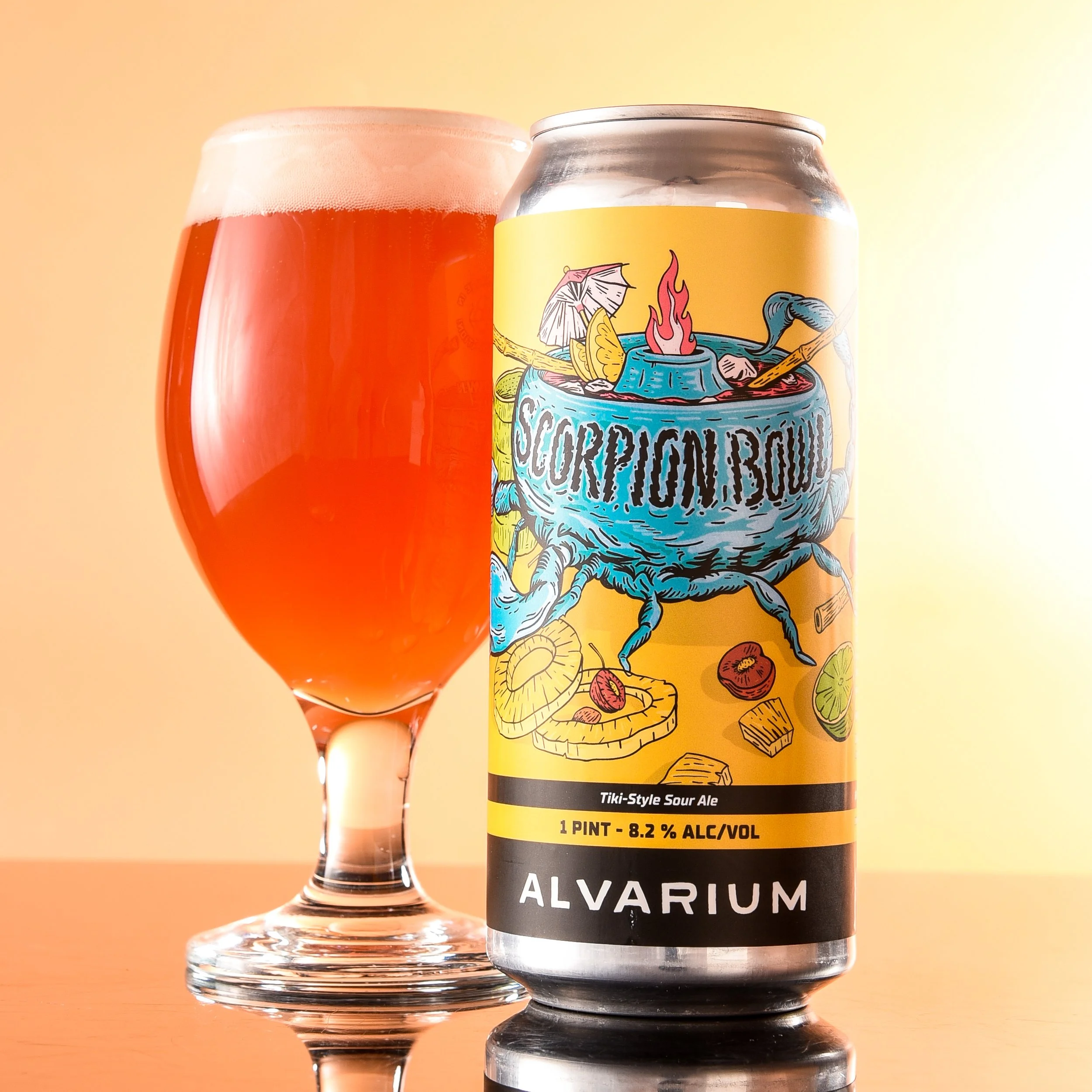 Alvarium's Scorpion Bowl is a cocktail-inspired Berliner Weisse-style sour ale that bursts with vibrant tropical fruit notes of pineapple, orange, lime, and sweet cherry, underpinned by a subtle molasses sweetness mimicking rum nuances. This brew offers a delightful balance of sweet and sour, with tart, finishing smoothly with a hint of citrus and plum peel.